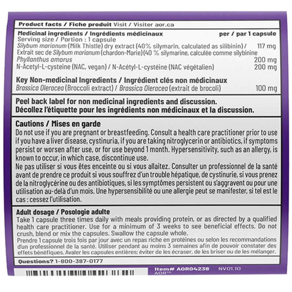 AOR - Liver Support - 180 Veggie Capsule(s) - NPN: 80023799 -- Liver Support contains four powerful ingredients known to support the liver: milk thistle extract, N-Acetyl-Cysteine (NAC), Phyllanthus amarus and sulforaphane glucosinolate (SGS) from broccoli extract. These ingredients have collectively been shown to protect the liver from toxins, combat viral infections, stimulate liver regeneration, enhance levels of glutathione, the bodys most powerful antioxidant, and support detoxification processes.Those with liver illnesses or suboptimal liver function and those looking for a formula to support liver detoxification can benefit from Liver Support, as well as those looking to protect against liver damage caused by alcohol, drugs and environmental toxins.