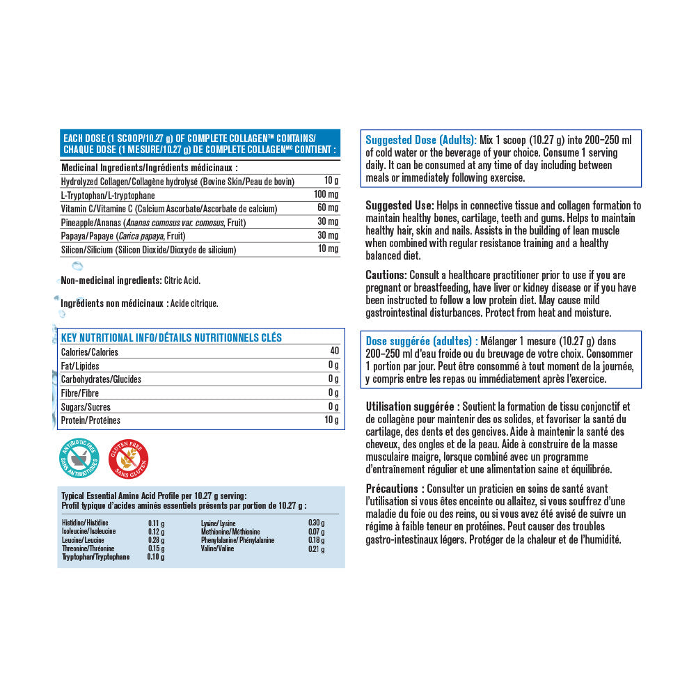 PROGRESSIVE - Complete Collagen - 500 Gram(s) - NPN: 80073874 -- Builds lean muscle when combined with regular resistance training and a healthy balanced dietCollagen is an essential part of a healthy, active body. As a key structural protein, it provides the building blocks you need to stay strong while youre busy living life to the fullest.So while active may look different for everyone, we all need the same support. Use Complete Collagen to mend and repair so you can run, bend, lift and stretch with ease.