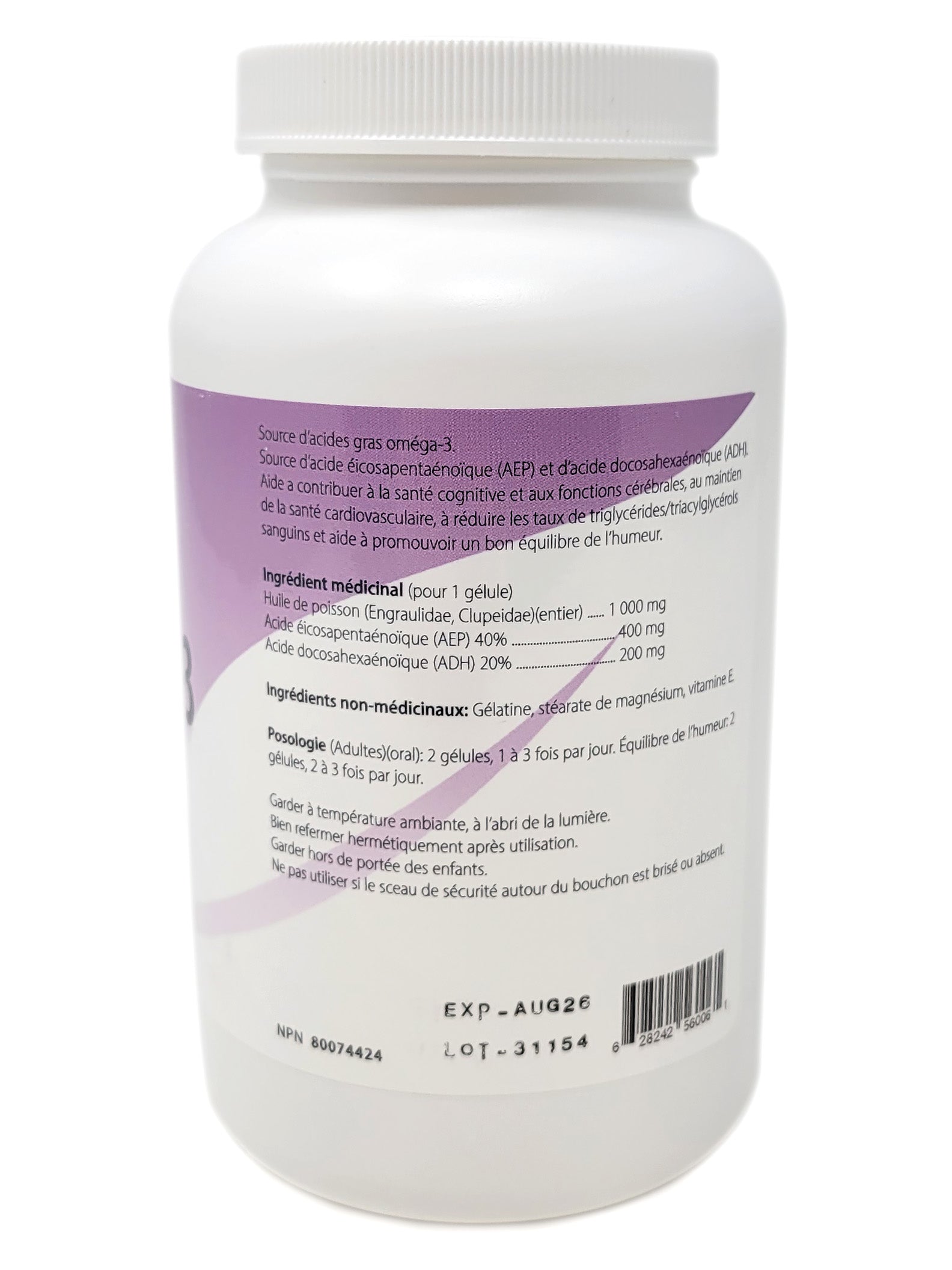 - Eicosapentaenoic acid (EPA; 40%) – 400 mg