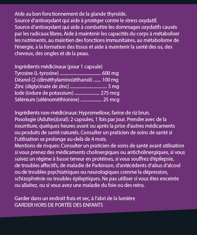 - L-tyrosine: May raise thyroid hormone production. The thyroid gland combines tyrosine and iodine to make thyroid hormone.
